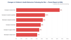 The study further examined the effects on children’s health behaviors. Among participants, 206 were parents of children aged 2–10. The most striking finding was a substantial increase in screen time, reported by 85% of parents.