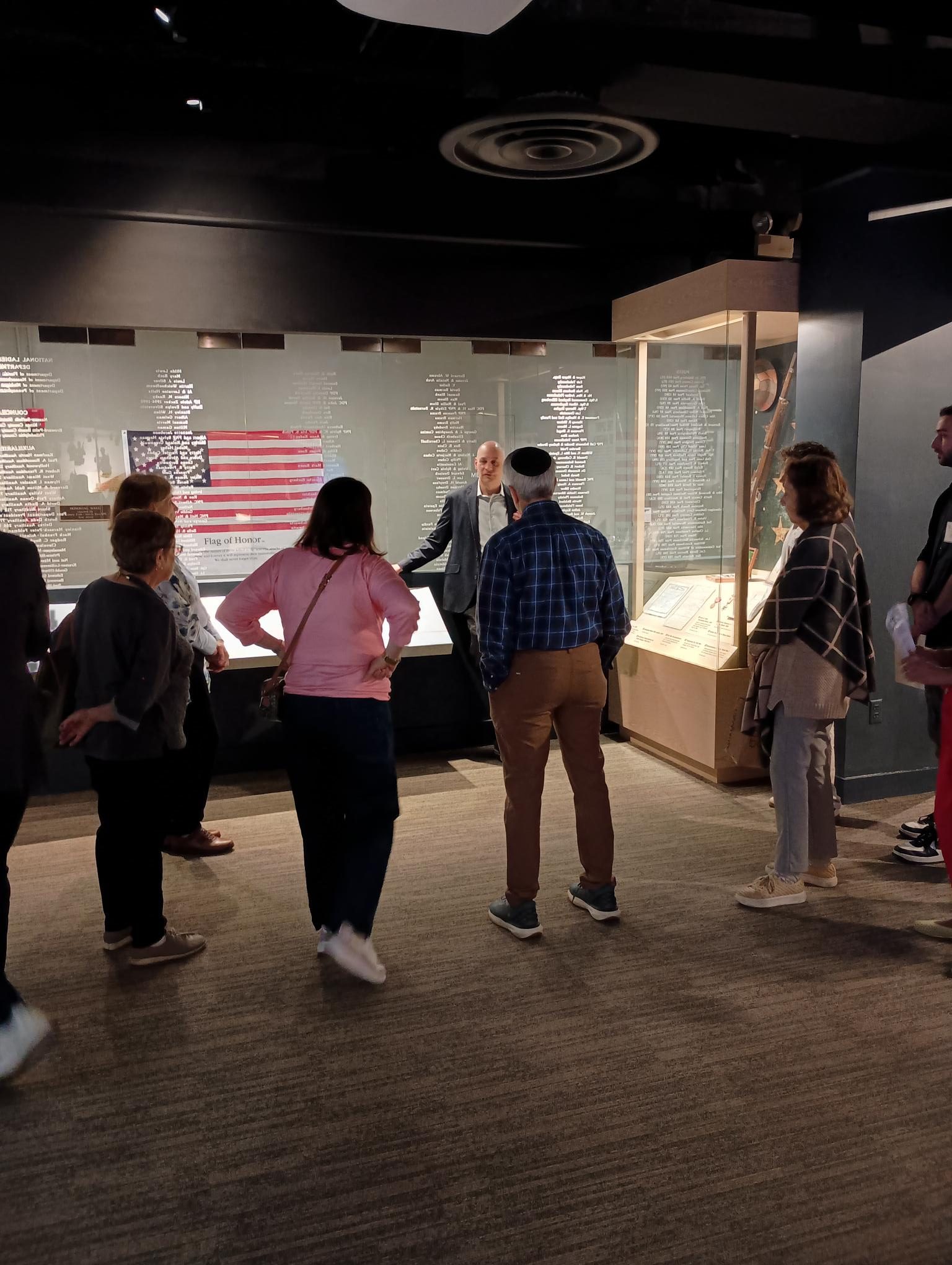 Following a tour of the museum’s main exhibit, Mike Rugel, Director of Programs and Content, welcomed the group and shared the testimony of David Solomon, a World War II veteran who studied at HU through the G.I. Bill, which provided veterans with support for higher education, housing, and other benefits. In his testimony, Solomon reflects on his decision to attend the Hebrew University: