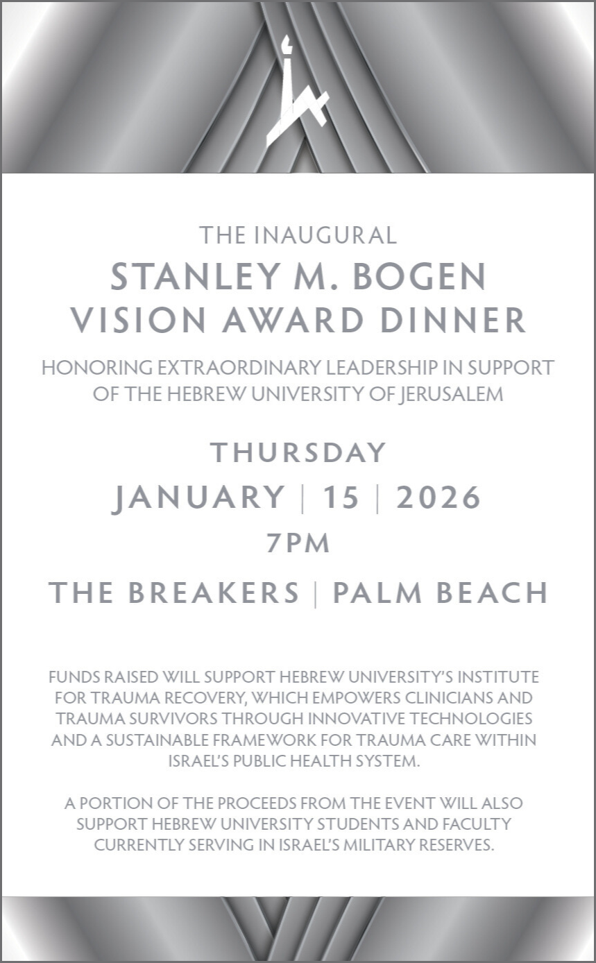 Funds raised will support Hebrew University’s Institute for Trauma Recovery, which empowers clinicians and trauma survivors through innovative technologies and a sustainable framework for trauma care within Israel’s public health system.