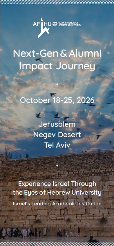 Embark on an immersive, intellectually engaging journey designed for young professionals and Hebrew University alumni in their 30s and 40s. Explore Israel’s rich heritage, vibrant culture, and bold future through exclusive access to Hebrew University’s leading scholars, innovators, and changemakers. Discover Jerusalem’s heritage and history, engage with resilience and social-impact initiatives in the Gaza Envelope and Negev Desert, and uncover Tel Aviv’s dynamic cultural and innovation scene. This journey is thoughtfully curated to spark curiosity, foster discovery, and create lasting connections through meaningful experiences and social impact.